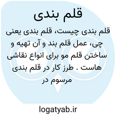 (قَ لَ. بَ ) [ معر. ] (حامص. ) عمل قلم بند و آن تهیه و ساختن قلم مو برای انواع نقاشی ها است.