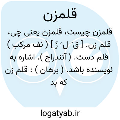 ( صفت ) ۱ - نویسنده: قلمزن که بد کرد با زیر دست قلم بهتر او را بشمشیر دست. ( نظامی فرنظا ) ۲ - نقاش: بطح خویش حیرت زند دست که از هیچش قلمزن نقش چون بست ۳ ? - صنعتگری که کار او قلمزنی است.