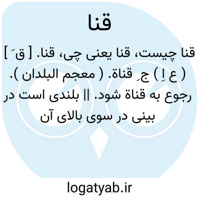 قنا. [ ق َ ] ( ع اِ ) ج ِ قناة. ( معجم البلدان ). رجوع به قناة شود. || بلندی است در بینی در سوی بالای آن بین قصبة مارن و عیب نبود. و این در مورد اسب و پرنده و آدمی اطلاق گردد. ( از معجم البلدان ) ( از منتهی الارب ). و آن در اسب عیب است و در باز و قوش حسن است. ( اقرب الموارد ).