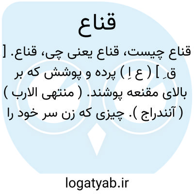 قناع. [ ق ِ ] ( ع اِ ) پرده و پوشش که بر بالای مقنعه پوشند. ( منتهی الارب ) ( آنندراج ). چیزی که زن سر خود را بوسیله آن پوشد و آن وسیعتر است از مقنع و مقنعه. ( اقرب الموارد ):