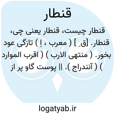 ( اسم ) ۱ - پوست گاوی که درون آن را پر زر کرده باشند ۲ - واحد وزن معادل یکهزار و دویست اوقیه یا مساوی یکصد و بیست رطل جمع: قناطیر. توضیح در وزن قنطار اختلاف کرده اند: بعض آنرا۴٠٠٠ دینار یا ۱٠٠ من و ۱٠٠ رطل و ۱٠٠ مثقال و ۱٠٠ درهم گفته اند برخی ۱۲٠٠ اوقیه یا ۱۲٠ رطل و برخی ۴٠ اوقیه از زر یا ۱۲٠٠ دینار ۸٠ /٠٠٠ درهم یا ۱٠٠ رطل زر و سیم: از زرد و سرخ مرد بنفریبد ناراست صره وی و قناطارش.