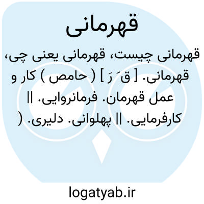 قهرمانی. [ ق َ رَ ] ( حامص ) کار و عمل قهرمان. فرمانروایی. || کارفرمایی. || پهلوانی. دلیری. ( فرهنگ فارسی معین ):