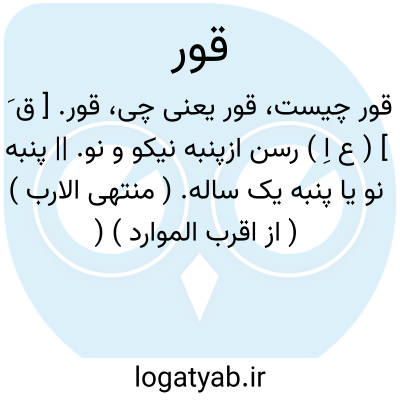 قور. ( اِ ) بر وزن مور، پنبه را گویند و به عربی قطن خوانند. ( برهان ) ( ناظم الاطباء ). رجوع به قَور شود. || بمعنی خصیه هم آمده است. ( برهان ) ( ناظم الاطباء ). ظاهراً محرف غور = غر ( دبه خایه ). ( حاشیه برهان چ معین ). رجوع به غر شود. || گره و برآمدگی در اعضا و غیر آن را نیز گفته اند. ( برهان ) ( ناظم الاطباء ). || نشانه ای که در بلندی گذارند جهت تیر انداختن. ( ناظم الاطباء ).