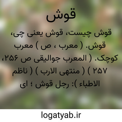 قوش. ( معرب، ص ) معرب کوچک. ( المعرب جوالیقی ص 256، 257 ) ( منتهی الارب ) ( ناظم الاطباء ): رجل قوش؛ ای صغیرالجثة. ( اقرب الموارد ) ( ناظم الاطباء ).