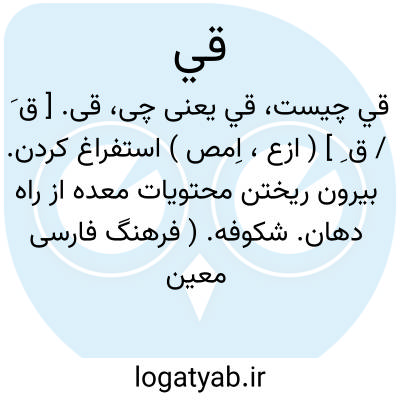 قی. [ ق َ / ق ِ ] ( ازع، اِمص ) استفراغ کردن. بیرون ریختن محتویات معده از راه دهان. شکوفه. ( فرهنگ فارسی معین ):