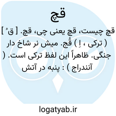 قچ. [ ق ُ ] ( ترکی، اِ ) قُج. میش نر شاخ دار جنگی. ظاهراً این لفظ ترکی است. ( آنندراج ):