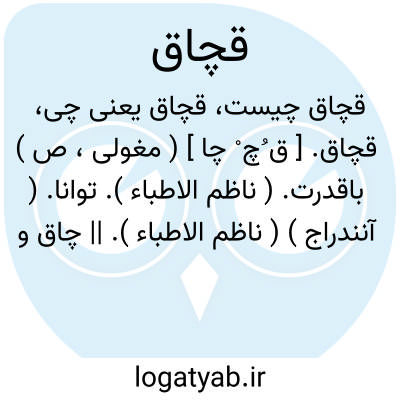 قچاق. [ ق ُچ ْ چا ] ( مغولی، ص ) باقدرت. ( ناظم الاطباء ). توانا. ( آنندراج ) ( ناظم الاطباء ). || چاق و فربه. ( آنندراج ). زوردار. ( ناظم الاطباء ).