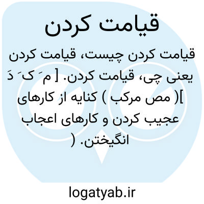 شور و غوغا و هنگامه بر پا کردن: قیامت می کنی سعدی بدین شیرین سخن گفتن مسلم نیست طوطی را در ایامت شکر خایی.