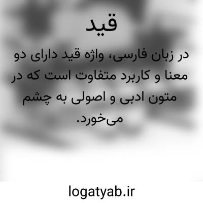 (ق ) [ ع. ] ۱ - (اِ. ) بند زنجیر. ج. اقیاد، قیود. ۲ - شرط، عهد، پیمان. ۳ - کلمه ای است که غیر از اسم کلمات دیگری مانند فعل و صفت، را به زمان، مکان یا حالت خاصی مقید سازد.
