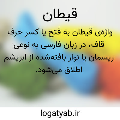 ( اسم ) رشته نازک که از ابریشم بافند و آن را زه دامن و گریبان جامه و رشته تسبیح کنند: ز قیطان درو ریشه عشقش دواند برنگی که در چشم تارش نماند.