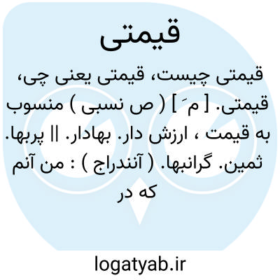 قیمتی. [ م َ ] ( ص نسبی ) منسوب به قیمت، ارزش دار. بهادار. || پربها. ثمین. گرانبها. ( آنندراج ):