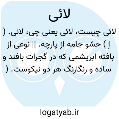 ۱- ( صفت ) منسوب به لای.۲- ( اسم ) حشو پارچه که میان ابره و آستر جامه از پنبه یا پشم یاموی یا پارچه قراردهند. ۳- نوعی بافت. ابریشمین که در گجرات ( هند ) میبافتند و آن ساده یا رنگارنگ بود.