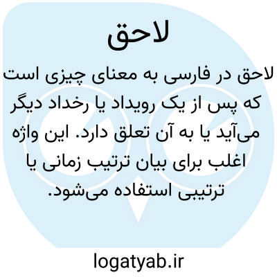 واژه‌ی «لاحق» در فارسی به معنای چیزی است که پس از یک رویداد یا رخداد دیگر می‌آید یا به آن تعلق دارد. این واژه اغلب برای بیان ترتیب زمانی یا ترتیبی استفاده می‌شود و نشان می‌دهد که یک حادثه، اتفاق یا عمل بعد از مورد دیگری رخ داده است. برای مثال، عبارت «وقایع لاحق به انقلاب» به معنی اتفاقاتی است که پس از انقلاب رخ داده‌اند.