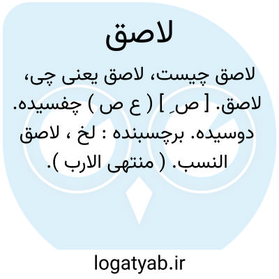 لاصق. [ ص ِ ] ( ع ص ) چفسیده. دوسیده. برچسبنده: لخ، لاصق النسب. ( منتهی الارب ).