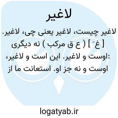 لاغیر. [ غ َ ] ( ع ق مرکب ) نه دیگری:اوست و لاغیر. این است و لاغیر، اوست و نه جز او. استعانت ما از تست بس و لاغیر. که هریک از باد غرور دم اَنا و لاغیری میزند. ( رشیدی ). من بودم و او و لاغیر.