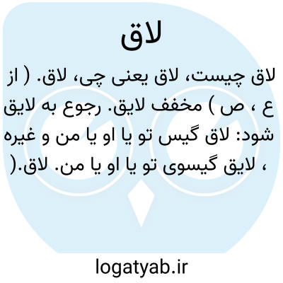 ( صفت ) شایسته سزاوار: لاق گیس تو لاق ریشت. توضیح بعضی آنرا صورتی از لاغ بمعنی تار گیسو گرفته اند.