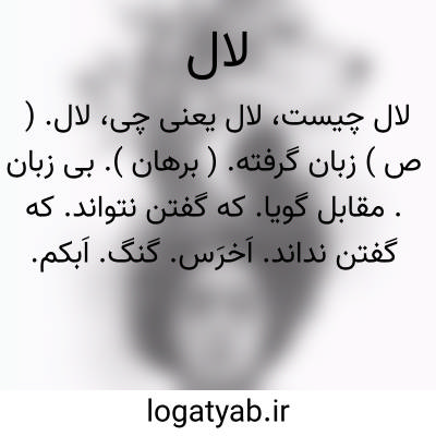 لال. ( ص ) زبان گرفته. ( برهان ). بی زبان. مقابل گویا. که گفتن نتواند. که گفتن نداند. اَخرَس. گنگ. اَبکم. بکیم. ( منتهی الارب ):