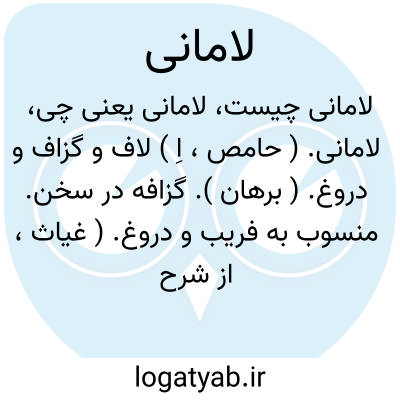 لامانی. ( حامص، اِ ) لاف و گزاف و دروغ. ( برهان ). گزافه در سخن. منسوب به فریب و دروغ. ( غیاث، از شرح خاقانی ):