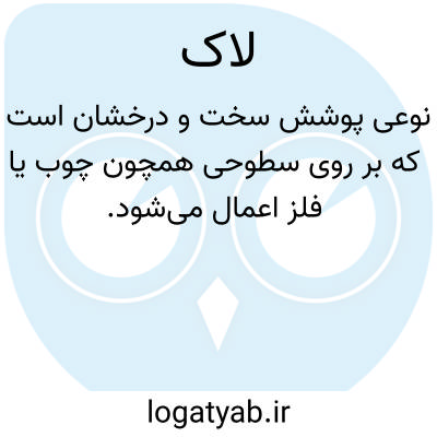 ( اسم ) ۱- نام صمغی غالبا سرخ رنگ و گاهی خرمایی و یا قهوه یی که از برخی گیاهان از قبیل گونه های کاکتوس و عناب و برخی گونه های غبیرا بدست میاید. لاک دارای بویی مطبوع و شکستنش ناصاف و در محل شکستن براق است و در صورت گرم شدن از دیاد حجم مییابد و در برابر شعله میسوزد. از نوع سرخ رنگ لاک برخی رنگها تهیه میکنند که با زاج بر روی الیاف پارچه ها و نخهای پشمی ثابت میشود: همی گفت و پیچید بر خشک خاک ز خون دلش خاک همرنگ لاک. ( عنصری لغ. ) ۲- برخی اکسیدهای فلزی از قبیل اکسید روی و اکسید قلع و اکسید آلومینیوم ( آلومین ) با مواد رنگی گیاهی ترکیبات رنگی ثابتی بوجود میاوردند. رنگهای ثابت مذکور که در رنگ کردن پارچه ها و نخهای شمی بکار میرود اصطلاحا بنام لاک یا رنگ لاک?ی خوانده میشود. ۳- محفظه ای که پوشش خارجی بدن لاک پشتان را بوجود میاورد و جهت حفظ بدن آنها در برابر خطرات احتمالی خارجی بکار میرود. یا لاک والکل. ۱- لاک توام با الکل تقلیبی. ۲- رنگ حاصل از اختلاط لاک و الکل تقلیبی. ۴- مایع سرخ رنگی که زنان امروزه ناخن را بدان رنگ کنند. یا لاک ناخن. یکی از لوازم آرایش بانوان و آن لاکی است برنگهای مختلف ( غالبا از فروع رنگ سرخ ) که بدان ناخنهارا رنگ کنند.