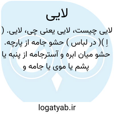 ۱- ( صفت ) منسوب به لای.۲- ( اسم ) حشو پارچه که میان ابره و آستر جامه از پنبه یا پشم یاموی یا پارچه قراردهند. ۳- نوعی بافت. ابریشمین که در گجرات ( هند ) میبافتند و آن ساده یا رنگارنگ بود.