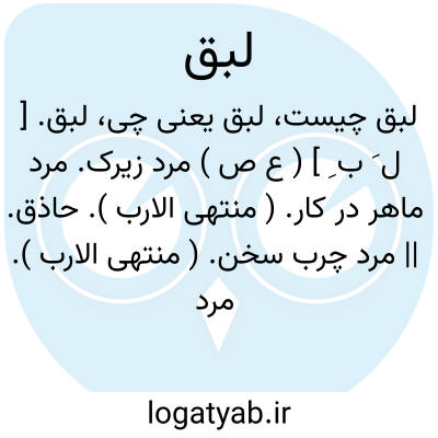 لبق. [ ل َ ب ِ ] ( ع ص ) مرد زیرک. مرد ماهر در کار. ( منتهی الارب ). حاذق. || مرد چرب سخن. ( منتهی الارب ). مرد هشیار چرب زبان چابک. ( دهار ) ( مهذب الاسماء ). چرب زبان و زیرک. ( حاشیه مثنوی ):