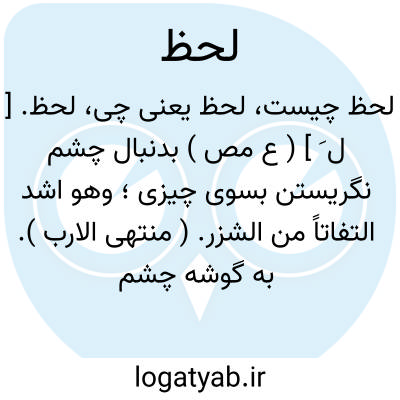 لحظ. [ ل َ ] ( ع مص ) بدنبال چشم نگریستن بسوی چیزی؛ وهو اشد التفاتاً من الشزر. ( منتهی الارب ). به گوشه چشم نگریستن. ( تاج المصادر ). لحظان. ( منتهی الارب ).