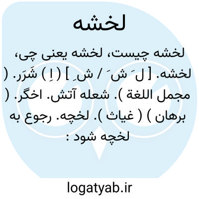 لخشه. [ ل َ ش َ / ش ِ ] ( اِ ) شَرَر. ( مجمل اللغة ). شعله آتش. اخگر. ( برهان ) ( غیاث ). لخچه. رجوع به لخچه شود: