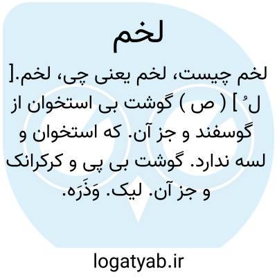 لخم.[ ل ُ ] ( ص ) گوشت بی استخوان از گوسفند و جز آن. که استخوان و لسه ندارد. گوشت بی پی و کرکرانک و جز آن. لیک. وَذَرَه. گوشت بی استخوان و فضول و رگ و ریشه.
