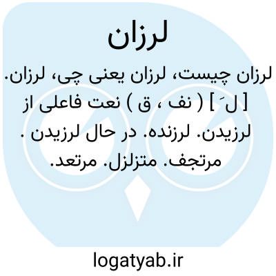 لرزان. [ ل َ ] ( نف، ق ) نعت فاعلی از لرزیدن. لرزنده. در حال لرزیدن. مرتجف. متزلزل. مرتعد. مرتعش.مترجرج. رجراج. رَجراجة. ( منتهی الارب ):