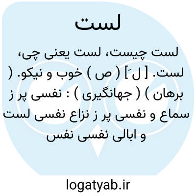 لست. [ ل َ] ( ص ) خوب و نیکو. ( برهان ) ( جهانگیری ):
