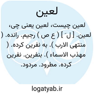 لعین. [ ل َ ] ( ع ص ) رجیم. رانده. ( منتهی الارب ). به نفرین کرده. ( مهذب الاسماء ). بنفرین. نفرین کرده. مطرود. مردود. ( منتهی الارب ). رانده از رحمت. رانده و دورکرده از رحمت و نیکی. لعنت کرده شده. ( مذکر و مؤنث دروی یکسان است. یقال: رجل لعین و امراءة لعین. اما هرگاه موصوف مذکور نباشد در مؤنث لعینة به تاء تأنیث آید ). آنکه هر کس او را لعنت کند. ( منتهی الارب ). ملعون: شمر لعین. شیطان لعین. ابلیس لعین: