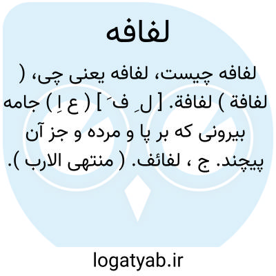 ( اسم ) ۱- پارچ. بیرونی که بر مرده و پای و جز آن پیچند کفن جمع: لفائف ( لفایف ). ۲- لفاف: پیکری دید در لفاف. خام چون در ابر سیاه ماه تمام. ( هفت پیکر.چا. ارمغان ۱۹۸ )