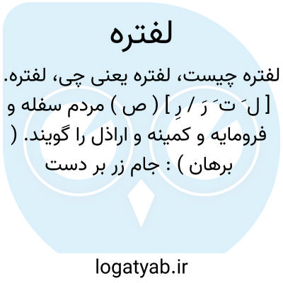 سفله، فرومایه، رذل، پست: جام زر بر دست نرگس می نهی / لفتره را میر مجلس می کنی (عطار: لغت نامه: لفتره ).