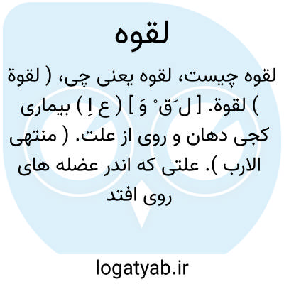( لقوة ) لقوة. [ ل َق ْ وَ ] ( ع اِ ) بیماری کجی دهان و روی از علت. ( منتهی الارب ). علتی که اندر عضله های روی افتد و چشم و ابرو و پوست پیشانی و لبها کوژ گردد و از نهاد طبیعی بگردد. ( ذخیره خوارزمشاهی ). علتی آلیة در روی که نیمی از روی به سوئی گردد و هیأت طبیعی آن تباه شود و دو لب به خوبی بهم نیاید و پلک یکی از دو شق تن به یکدیگر نیک منطبق نگردد. بیماریی که در نیمی از روی سستی پیدا شود و دهان خوب جفت نشود و یک چشم بر هم نیاید. کج شدن روی که بیمار نتواند یکی از دو چشم را فروبندد. کژدهانی. کژروئی. بیماری که دهن را کژ کند. ( دهار ). علتی که از آن دست و پای آدمی از کار بماند و روی کج شود. گویند حکماء آئینه ای ساخته اند که صاحب لقوه چون در آن بیند صحت یابد. ( برهان ). علة ینجذب لها شق الوجه الی جهة غیرطبیعیة فیخرج النفحة و البزقة من جانب واحد و لایحسن التقاء الشفتین و لاینطبق احدی العینین. ( بحر الجواهر ). صاحب کشاف اصطلاحات الفنون آرد: لقوة، به فتح لام و به کسر آن نیز آمده و سکون قاف مرضی باشد که یک شق از روی آدمی را به طرفی کشاند که از آفرینش طبیعی بیرون سازد و براثر این بیماری دم برآوردن و خیو افکندن تنها از شقی که از این بیماری ایمن مانده انجام گیرد و لب بالا بر لب زیرین قرار نیابد، و نیز یکی از دیدگان از بر هم زدن مژگان بازایستد. کذا فی الموجز: یک ساعت لقوه و فالج و سکته افتاد وی را. ( تاریخ بیهقی ص 610 ). و خداوند مزاج تر را علاج لقوة باید کرد. ( ذخیره خوارزمشاهی ).