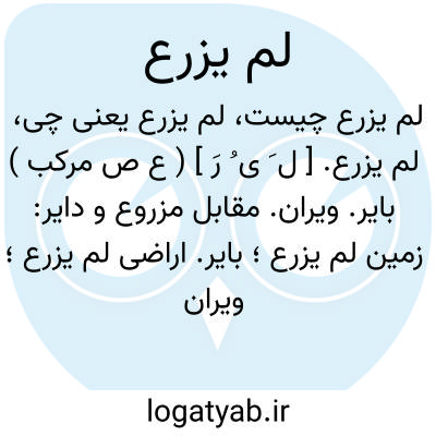 لم یزرع. [ ل َ ی ُ رَ ] ( ع ص مرکب ) بایر. ویران. مقابل مزروع و دایر: زمین لم یزرع؛ بایر. اراضی لم یزرع؛ ویران که کشت نشود.