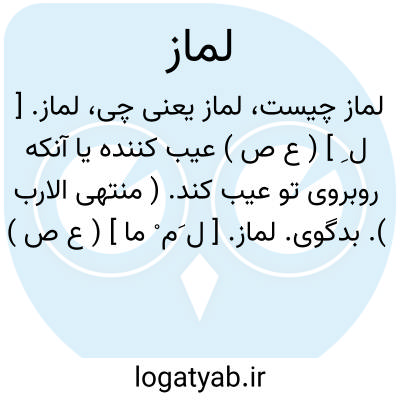 لماز. [ ل ِ ] ( ع ص ) عیب کننده یا آنکه روبروی تو عیب کند. ( منتهی الارب ). بدگوی.