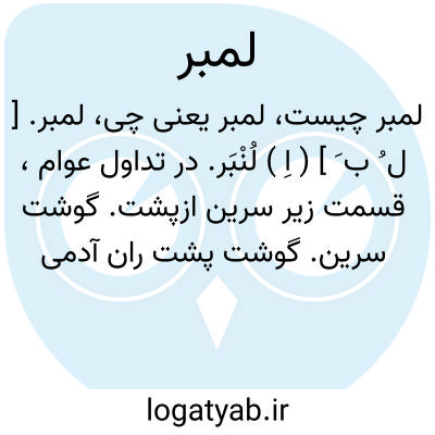 لمبر. [ ل ُ ب َ ] ( اِ ) لُنْبَر. در تداول عوام، قسمت زیر سرین ازپشت. گوشت سرین. گوشت پشت ران آدمی خاصه فربه آن.