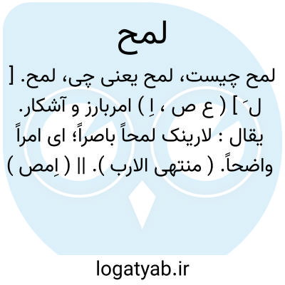 [ویکی الکتاب] معنی لَمْحِ: نظر کردن فوری و به عجله (لمح بصر یعنی چشم برهم زدن، که آن را خطف البصر نیز میگویند )