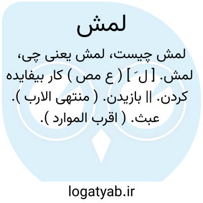 لمش. [ ل َ ] ( ع مص ) کار بیفایده کردن. || بازیدن. ( منتهی الارب ). عبث. ( اقرب الموارد ).