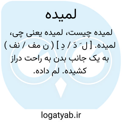 لمیده. [ ل َ دَ / دِ ] ( ن مف / نف ) به یک جانب بدن به راحت دراز کشیده. لم داده.