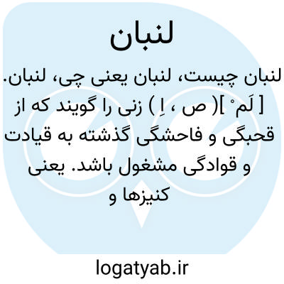 لنبان. [ لَم ْ ]( ص، اِ ) زنی را گویند که از قحبگی و فاحشگی گذشته به قیادت و قوادگی مشغول باشد. یعنی کنیزها و دخترخانها به هم رساند و به قحبگی اندازد. ( برهان ). صاحب آنندراج گوید: لنبان ترکیبی است از لَن به معنی آلت تناسل رجال و دیگر بان که افاده معنی محافظ و نگهبان و مراقب کند: