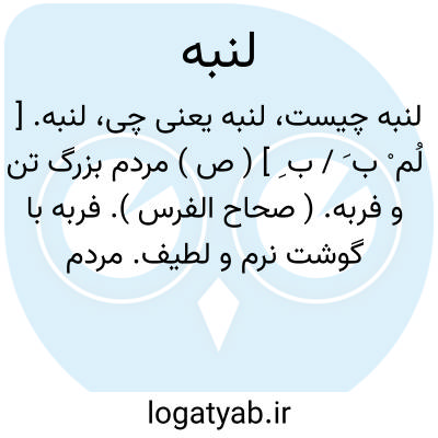 لنبه. [ لَم ْ ب َ / ب ِ ] ( ص ) گرد و مدوّر. ( جهانگیری ). هر چیز گرد و مدوّر، مانند سیب و انار و نارنج و امثال آن. ( برهان ). || تخمی که گاه گاه مرغ کند که پوست آن نرم باشد و سخت نشده باشد. تخم مرغ چون ناتمام افکند یعنی پوست آن نرم باشد. غرقات الدجاجة بیضها، باضتها و لیس لها قشر یابس. لمبه. و رجوع به لمبه شود.