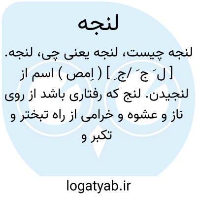 لنجه. [ ل َ ج َ /ج ِ ] ( اِمص ) اسم از لنجیدن. لنج که رفتاری باشد از روی ناز و عشوه و خرامی از راه تبختر و تکبر و رعنایی. رفتار به ناز. رفتاری بود به ناز، لیکن جاهلانه. ( فرهنگ اسدی ). خرامیدن زشت بود. ( اوبهی ). لنجه در هجوگویند و خرامیدن در مدح. ( فرهنگ اسدی ):