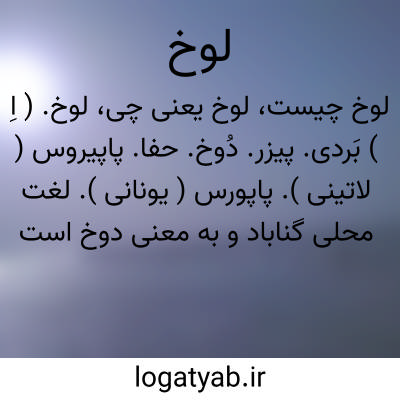 لوخ. ( اِ ) بَردی. پیزر. دُوخ. حفا. پاپیروس ( لاتینی ). پاپورس ( یونانی ). لغت محلی گناباد و به معنی دوخ است که به عربی اَسَل و لَمض و غَریف گویند. گیاهی است که بر کناره آبها روید و بوریا از آن بافند. ( غیاث ). گیاهی است که در آب روید و از آن حصیر بافند و در خراسان بدان خربزه آونگ کنند و در هندوستان به فیل دهند. ( برهان ). لخ. ( جهانگیری ). رُخ. ( لغت محلی شوشتر ذیل کلمه رُخ ). رجوع به لُخ، دوخ، پیزر و بردی شود.