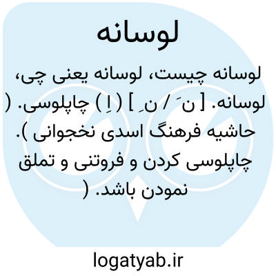 ( اسم ) ۱- چاپلوسی تملق. ۲- فریب: اجل چون دام کرده گیر پوشیده بخاک اندر صیاد از دو ریک دانه برهنه کرده لوسانه. ( کسائی. لفا.اق.۴۹۶ )