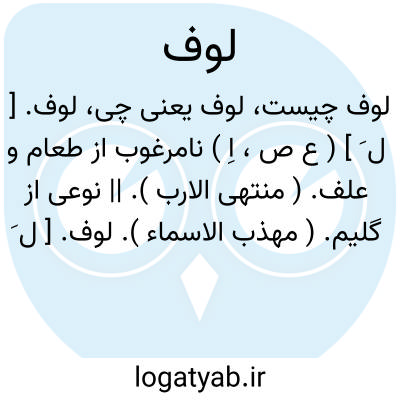 لوف. [ ل َ ] ( ع ص، اِ ) نامرغوب از طعام و علف. ( منتهی الارب ). || نوعی از گلیم. ( مهذب الاسماء ).