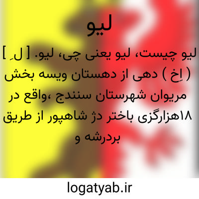 لیو. [ ل ِ ] ( اِخ ) دهی از دهستان ویسه بخش مریوان شهرستان سنندج،واقع در 18هزارگزی باختر دژ شاهپور از طریق بردرشه و چهارهزارگزی باختر نیگجه. کوهستانی و سردسیر. دارای 75 تن سکنه. آب آن از چشمه و قنات. محصول آنجا غلات، حبوبات، لبنیات و توتون. شغل اهالی زراعت و گله داری و راه آن مالرو است. اردو محل به فاصله یکهزار گزمرکب و به لیوی علیا و لیوی سفلی معروف و سکنه لیوی سفلی 50 تن است. ( از فرهنگ جغرافیائی ایران ج 5 ).