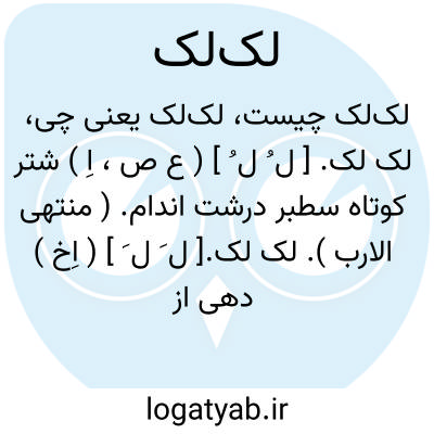 (لَ لَ ) (اِ. ) = لکلکه: ۱ - سخنان هرزه و یاوه. ۲ - پرنده ای است با پاهای بلند و گردن دراز که در جاهای بلند لانه درست می کند و خزندگان و حشرات را شکار می کند.، (لِ لِ ) (اِ. ) = لکلکه: چوبکی است که بر دول آسیا طوری نصب کنند که چون آسیا به گردش درآید، سر آن چوب حرکت کند و به دول خورد و دول را بجنباند و دانه به تندی در گلوی آسیا ریزد.