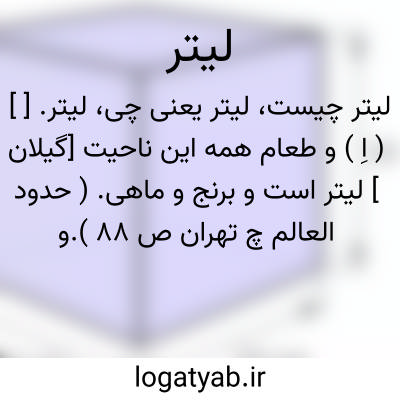 لیتر. [ ] ( اِ ) و طعام همه این ناحیت [گیلان ] لیتر است و برنج و ماهی. ( حدود العالم چ تهران ص 88 ).و رجوع به حدود العالم ترجمه مینورسکی ص 137 شود.