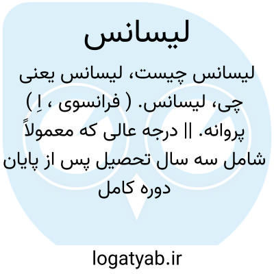لیسانس. ( فرانسوی، اِ ) پروانه. || درجه عالی که معمولاً شامل سه سال تحصیل پس از پایان دوره کامل متوسطه است. || شهادت نامه درجه مزبور.